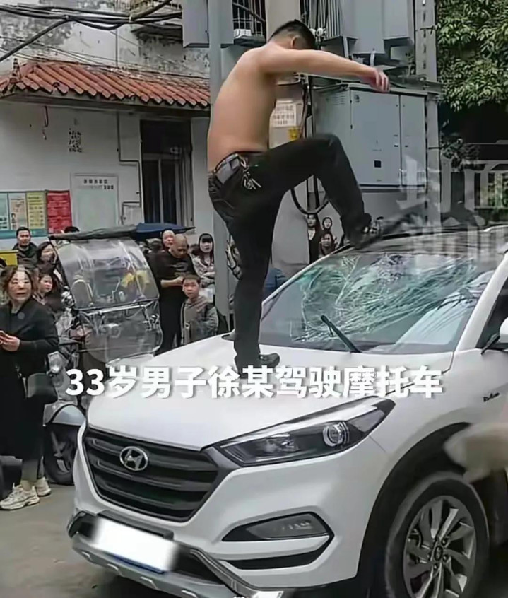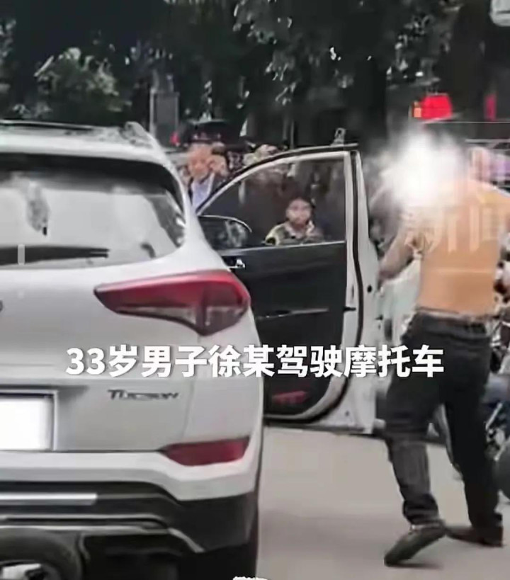 目击者回忆,当时一辆白色现代小轿车缓慢驶入小巷,试图在拥堵路段正常通行。驾驶两轮摩托车的徐某(33岁,事发时赤裸上身、有花臂纹身)见状瞬间情绪失控,认为小轿车“添堵”,影响了自己的通行。双方并未发生剐蹭,也无激烈口角,仅因通行避让问题,徐某便怒火中烧,做出极端行为。
